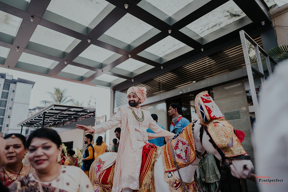 In the heart of bustling Mumbai, amidst the city's energetic pulse, Prathmesh and Megha's wedding was a dazzling fusion of tradition and modernity. Megha, draped in a vibrant silk saree, and Prathamesh, resplendent in a tailored sherwani, exchanged vows in a grand ceremony overlooking the Arabian Sea. The vibrant hues of Mumbai's skyline complemented the colorful festivities, blending the city's dynamic spirit with the rich tapestry of Indian customs. Amidst the rhythmic beats of dhol and the aroma of Mumbai street food, Prahtamesh and Megha's union became a radiant celebration of love.